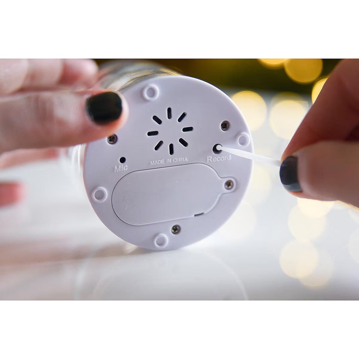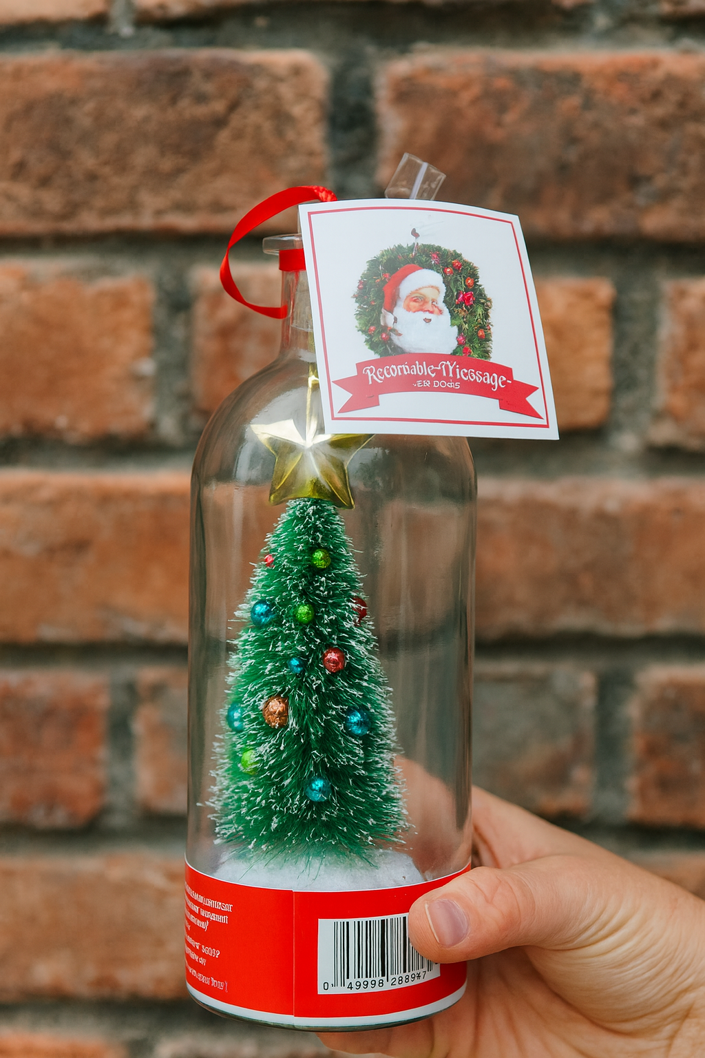 The bottle can hold up to 20 seconds of audio — perfect for a heartfelt holiday greeting, memory, or festive wish.