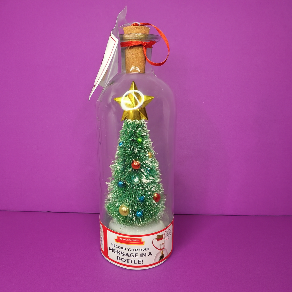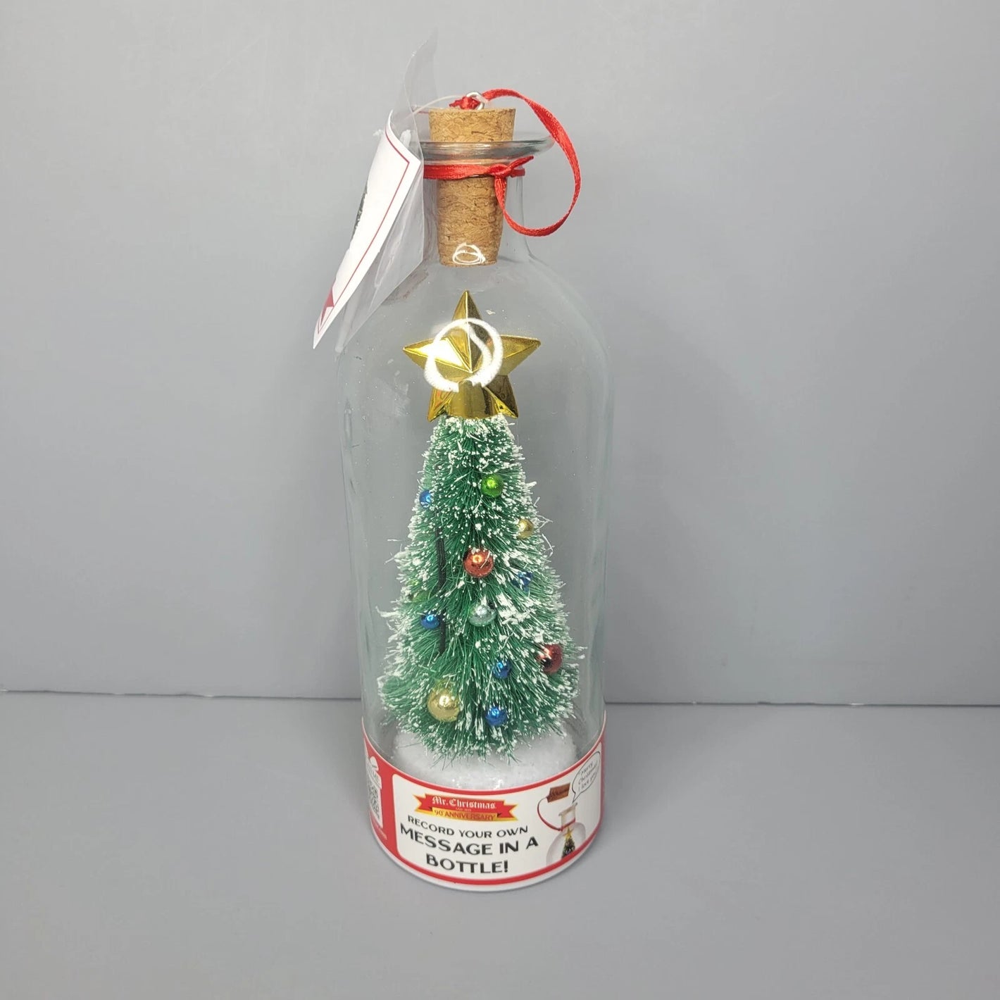 Bring the wonder of the season to life with this enchanting keepsake. A miniature Christmas tree sparkles inside a glass bottle, complete with snowy details and colorful ornaments. Record your own personal message and let your loved ones hear your voice year after year — a timeless gift that’s as heartfelt as it is magical.